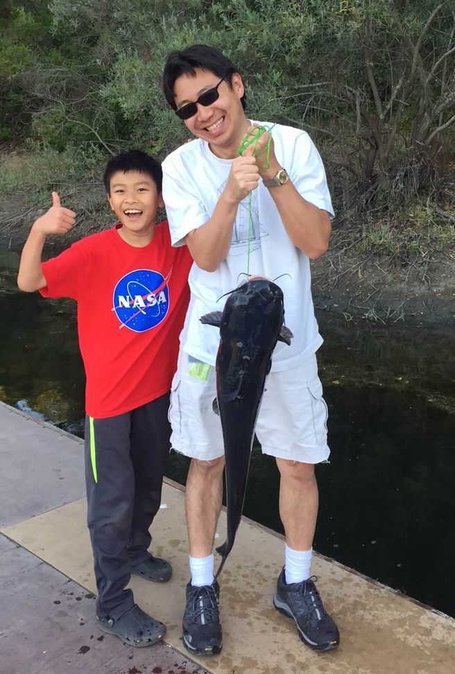 Fish pix My 40th birthday, me and my bro Selfie bass. Albacore with John and his buddy. Sean in Los Vaqueros with a nice bass. Big catfish at Lafayette Reservoir. Sean called him Toothless.